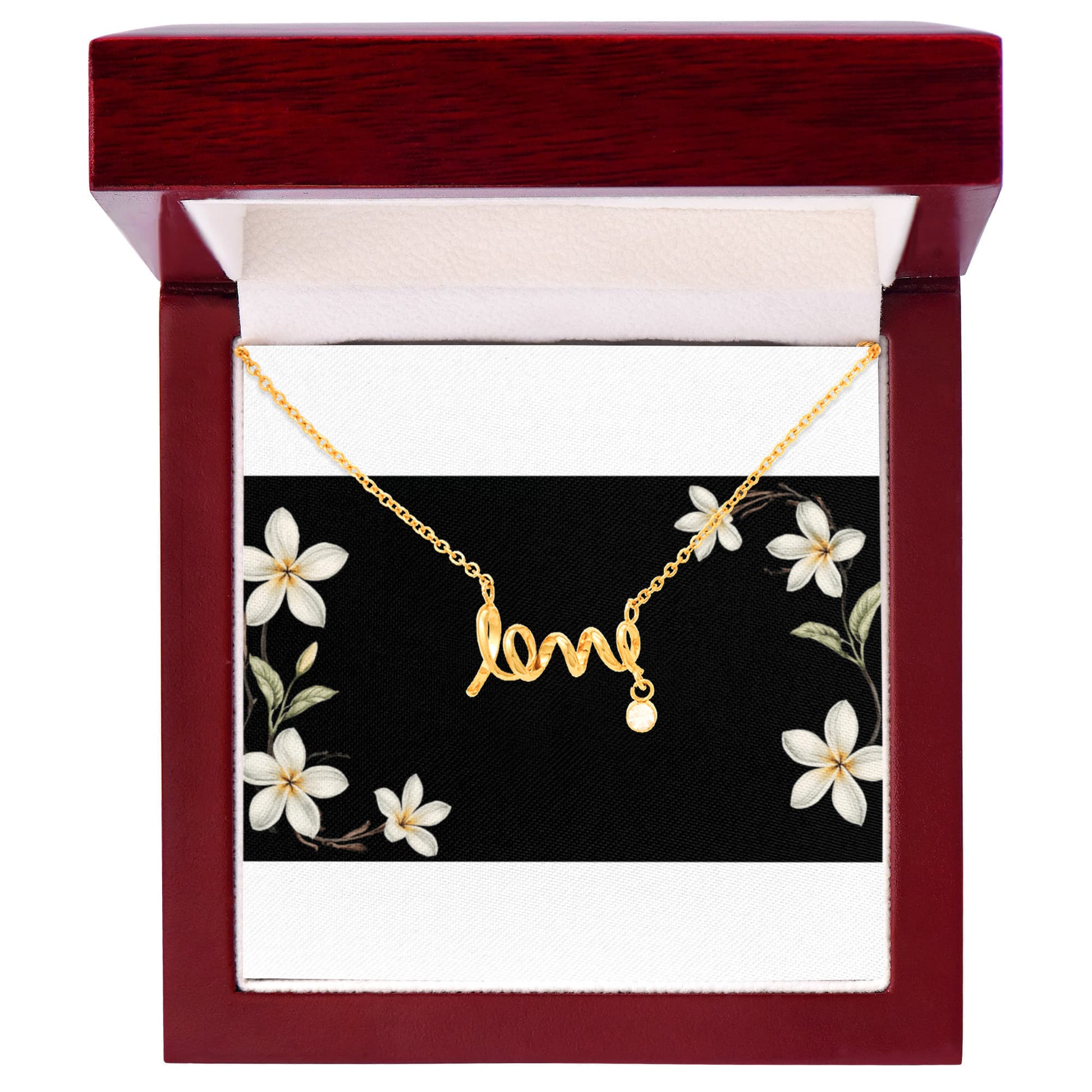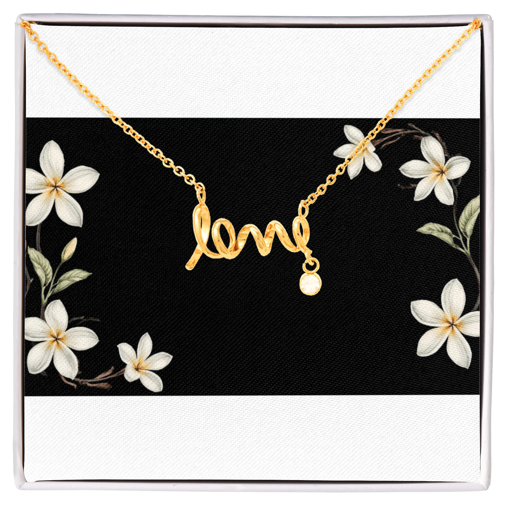 This dainty necklace leaves no doubt in her mind about your true feelings. Beautifully crafted, this adorable design spells out the word "love" in a playful cursive font.